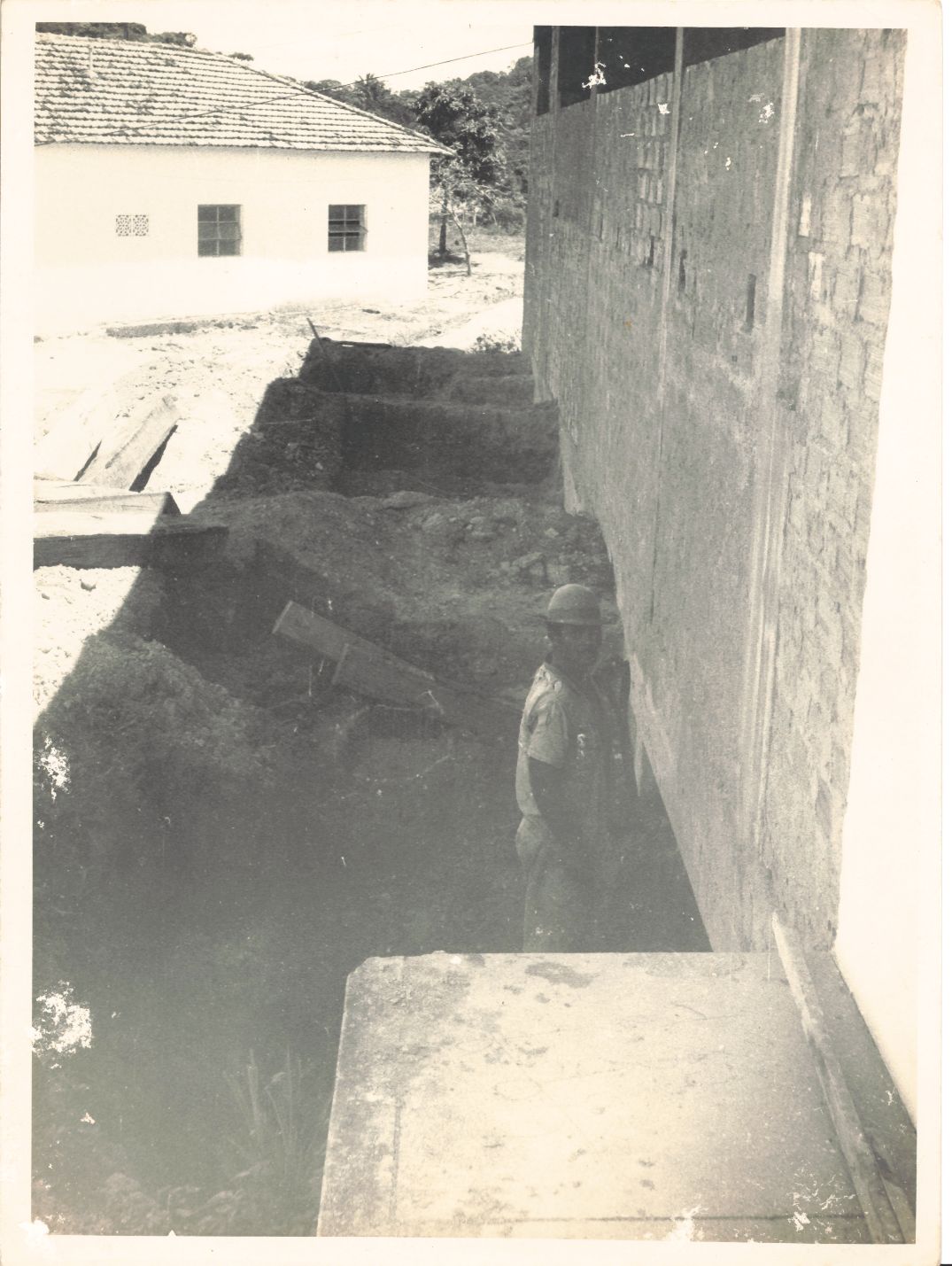 | Abstract: | Esta fotografia clicou outro ângulo da obra de reforço do alicerce e da construção do pavimento superior no 1º bloco da ala esquerda do prédio da reitoria da UFRPE, realizada em 1969. Vê-se, 01 trabalhador anônimo da construção civil ao lado das escavações e da parede do novo prédio ainda sem revestimento, olhando diretamente para o fotógrafo. Observa-se nesse local, restos de madeiras e mais adiante uma casa não identificada. Durante a entrevista para rememoração, ao observar a fotografia, o reitor Adierson falou:“Hum!... Essa casa não era o restaurante... (Observando) ... naquele tempo tinha algumas construções, moradias de professores e alguns servidores... não lembro que prédio era esse.” FONTES DE PESQUISA: Entrevista concedida às bibliotecárias Conceição Martins e Vania Ferreira para atender aos objetivos do Repositório Institucional, projeto “(Re) Memórias da UFRPE”, para a contextualização das imagens do acervo fotográfico do reitorado do Prof. Dr. Adierson Erasmo de Azevedo, no período de dezembro de 1969 a agosto de 1973. Acervo localizado no Núcleo do Conhecimento Professor João Baptista Oliveira dos Santos, da Biblioteca Central da UFRPE. Entrevista realizada no dia 29 de abril de 2016, no Espaço Santander da Biblioteca Central da UFRPE. Duração de 2h24min com transcrição e pesquisa complementar da bibliotecária Conceição Martins. |