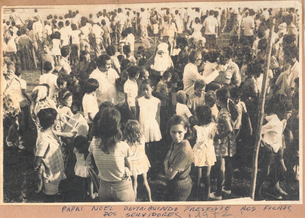Título: | Festividade Natalina de 1972, com a distribuição de presentes pelo Papai Noel aos filhos dos servidores no campus de Dois Irmãos – foto 1 |