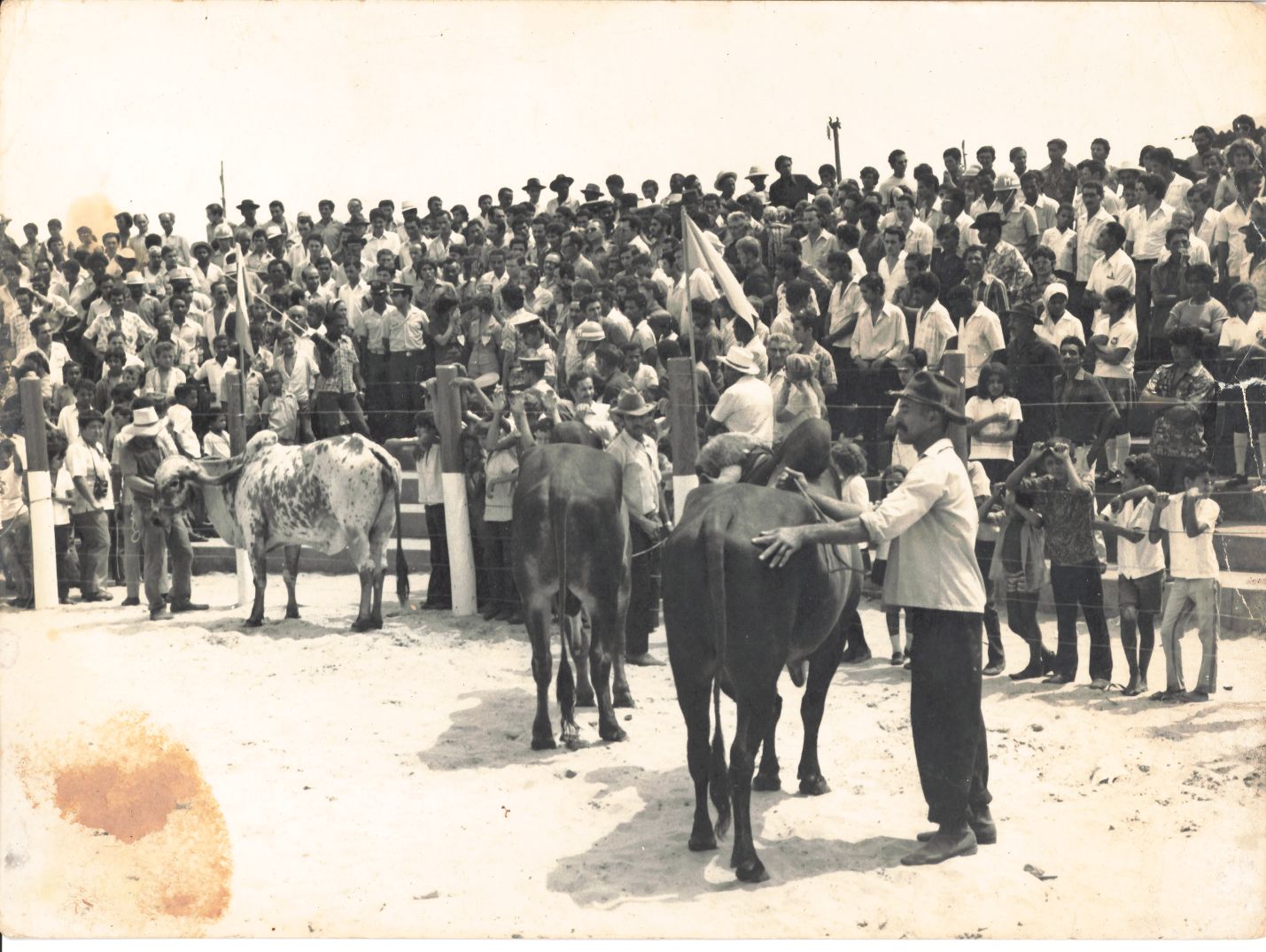| Citação: | UNIVERSIDADE FEDERAL RURAL DE PERNAMBUCO.Exposição de Animais no Parque Agropecuário de Uruguaiana, Goiás, Campus Avançado do Projeto Rondon.Fotografia, revelada em papel brilhante, em sépia, 24 cm x 18 cm. |