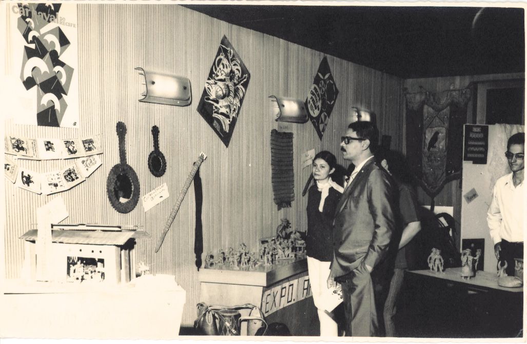 Citação: | UNIVERSIDADE FEDERAL RURAL DE PERNAMBUCO. Exposição de Artes Folclóricas no saguão do salão nobre da UFRPE. Fotografia, revelada em papel guache, em sépia, 18 cm x 12 cm. |