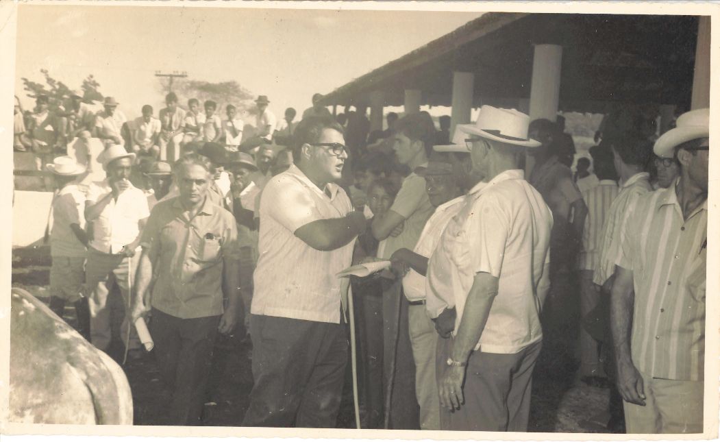 | Abstract: | Registra o leilão de gado realizado na Fazenda Agropastoril da UFRPE localizada em São Bento, Tapera, no Município de São Lourenço da Mata, Pernambuco, em 30 de setembro de 1971. Nessa fotografia, vê-se o professor Airton de Moraes Miranda, diretor da mencionada fazenda e o professor João Baptista Oliveira dos Santos do Departamento de Zootecnia, ambos da UFRPE, em traje esportivo. O professor João Baptista usando camisa branca, calça escura e óculos se dirige aos participantes enquanto segura um documento relacionado ao leilão. Observa-se a presença de muitos homens. No ângulo inferior esquerdo da fotografia, vê-se parte de um bovino. No ângulo superior ao fundo da fotografia, é possível ver um grupo masculino. Durante a entrevista para rememoração, ao observar a fotografia, o reitor Adierson falou: “Um dos itens desse leilão eram os suínos e o professor João Baptista Oliveira dos Santos, especialista em suinocultura e diretor do Departamento de Zootecnia atuou como juiz... Aqui está Airton de Moraes Miranda, diretor da fazenda...”. FONTES DE PESQUISA: Entrevista concedida às bibliotecárias Conceição Martins e Vania Ferreira para atender aos objetivos do Repositório Institucional, projeto “(Re) Memórias da UFRPE”, para a contextualização das imagens do acervo fotográfico do reitorado do Prof. Dr. Adierson Erasmo de Azevedo, no período de dezembro de 1969 a agosto de 1973. Acervo localizado no Núcleo do Conhecimento e da Memória Agronômica “Professor João Baptista Oliveira dos Santos”, da Biblioteca Central da UFRPE. Entrevista realizada no dia 04 de maio de 2016, no setor de Normalização da Biblioteca Central da UFRPE. Duração de 2h32min22seg, com transcrição e pesquisa complementar da bibliotecária Conceição Martins. |