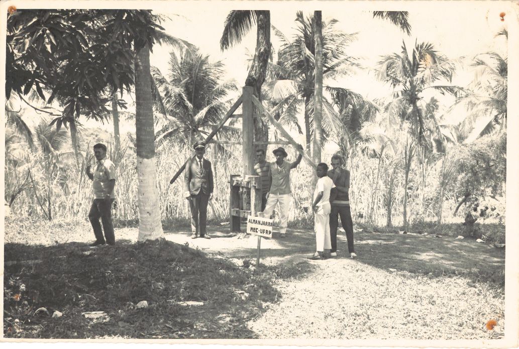 | Abstract: | Click da montagem e instalação do stand que comportaria a exposição sobre as ações da UFRPE realizada no Parque Histórico dos Guararapes no ano de 1969. Pode-se observar o terreno com muitos coqueiros no qual encontram-se 06 figuras masculinas não identificadas, sendo um deles militar. Todos olham para o fotógrafo. Percebe-se que ali estão para dar continuidade à montagem do stand já iniciado. Há uma placa onde se lê: ALMANJARRA MEC -UFRP, mas não se entende seu significado. Durante a entrevista para rememoração, ao observar a fotografia, o reitor Adierson falou: “Eita! Não consigo identificar ninguém... Dá para perceber que esse grupo foi o responsável pela montagem do stand da exposição...”. FONTES DE PESQUISA: Entrevista concedida às bibliotecárias Conceição Martins e Vania Ferreira para atender aos objetivos do Repositório Institucional, projeto “(Re) Memórias da UFRPE”, para a contextualização das imagens do acervo fotográfico do reitorado do Prof. Dr. Adierson Erasmo de Azevedo, no período de dezembro de 1969 a agosto de 1973. Acervo localizado no Núcleo do Conhecimento Professor João Baptista Oliveira dos Santos, da Biblioteca Central da UFRPE. Entrevista realizada no dia 04 de maio de 2016, no setor de Normalização da Biblioteca Central da UFRPE. Duração de 2h32min22seg, com transcrição e pesquisa complementar da bibliotecária Conceição Martins. |