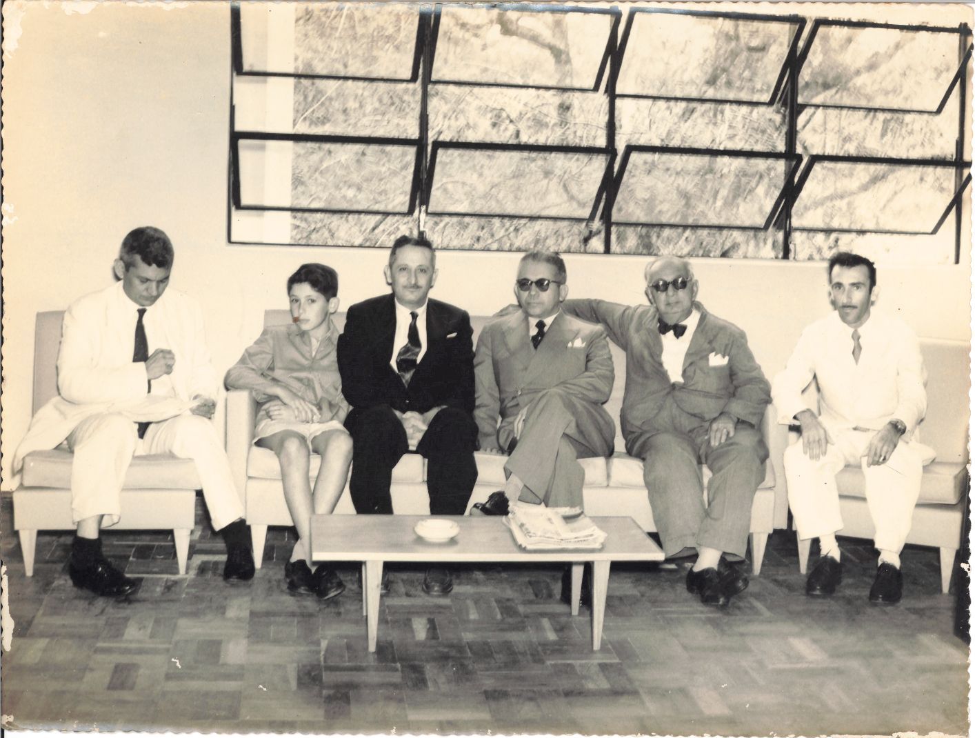 | Abstract: | Imagem da ocasião em que o professor Mário Bezerra de Carvalho, vice-reitor da Universidade Rural de Pernambuco (URP), recebeu a visita do professor Tuffi Coury, representando a Escola Superior de Agricultura “Luiz de Queiroz” (ESALQ) à URP, em 04 de julho de 1958. Pode-se observar que no sofá que integra o mobiliário da antessala da reitoria, encontram-se sentados o professor Mário Bezerra de Carvalho trajando terno claro, camisa branca, gravata escura, lenço de bolso, óculos escuros e pernas cruzadas, tendo ao seu lado esquerdo o professor Mário Coelho de Andrade Lima também usando terno claro, camisa branca, gravata escura, lenço de bolso, óculos escuros, com o braço direito sobre o encosto do sofá, olhando para a objetiva. Ao lado direito do professor Mário Bezerra de Carvalho está sentado o professor Tuffi Coury, trajando terno escuro, camisa branca, gravata escura, lenço de bolso, mãos cruzadas, olhando para o fotógrafo com ar de riso. Sentado ao seu lado há um menino usando bermuda branca, camisa de cor clara, mãos cruzadas também fitando o fotógrafo. Vê-se ainda no ângulo direito da fotografia, o professor Salvador Nigro trajando branco com gravata de cor clara, usando bigode, relógio de pulso e anel ambos no braço e mão esquerdos. Ele também olha para a objetiva. No ângulo esquerdo da fotografia, sentado na outra poltrona, está outro visitante de nome desconhecido trajando branco com gravata escura, com a cabeça baixa olhando algo em seu colo. Cinco deles usam sapatos pretos, apenas o professor Tuffi Coury, usa sapatos marrons. Diante do sofá há uma mesinha, sobre ela tem uma pilha revistas cujo título foi impossível identificar, há também um cinzeiro. Na parede posterior ao sofá há seis janelões abertos para a área externa do prédio da reitoria possibilitando a visão e o clima da Mata Atlântica. FONTES DE PESQUISA: BOLETIM DA UNIVERSIDADE RURAL DE PERNAMBUCO. Recife: Imprensa da Universidade Rural e Pernambuco, n. 4, 1958. UNIVERSIDADE RURAL DE PERNAMBUCO. Plaquete comemorativa do cinquentenário da Escola Superior de Agricultura da Universidade Rural de Pernambuco: 1812-1962. Recife: Imprensa Universitária da URP, 1962. Trimestral. PESQUISA COMPLEMENTAR: KOSSOY, Bóris. A fotografia como fonte histórica: introdução à fotografia e interpretação das imagens do passado. São Paulo: Museu da Indústria, Comércio e Tecnologia, 1980; ____. Fotografia e história. São Paulo: Ática, 1998. |