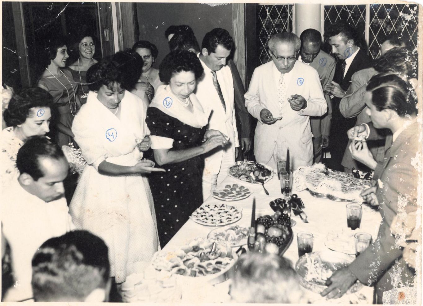 | Abstract: | Registra a recepção oferecida pelo reitor Manuel Rodrigues Filho em sua residência, à turma de concluintes do Curso de Medicina Veterinária do ano de 1959, que o homenageou com a escolha do seu nome para Paraninfo. A turma de 1959 era composta pelos seguintes alunos: Ariovaldo Torres, Geraldo Andrade Teixeira, Geraldo Fernando Saboya, Herman de Moreira Albuquerque, José Cassemiro de Lima Albuquerque, João Fernando de Carvalho, Joaquim Berdor Jardim, Leônidas Espírito Santos Saraiva, Moysés Castanha Accioly, Nélson Dutra Buarque, Onildo Travassos de Medeiros, Pedro Chaves Nunes, Rosael Paes Barreto Pereira e Valfredo Cordeiro de Albuquerque. Na fotografia não foi possível identificar nenhum deles. Vê-se o reitor, professores, servidores, convidados e formandos, todos diante de uma mesa ricamente ornamentada, era época natalina, contendo diversos pratos doces, salgados e frutas. O reitor trajando branco serve-se, tendo ao lado os professores Artur Lopes e Saboia. Na lateral esquerda da mesa estão as senhoras: Dagmar Siqueira de Carvalho, secretária da Escola Superior de Medicina Veterinária, trajando vestido de poá, cabelos curtos, completam o mesmo uma gola branca e um colar de pérolas com três voltas, ao seu lado, encontra-se a professora Maria Celene Cardoso, diretora da Escola de Economia Doméstica, usando vestido branco, colar de pérolas e cabelos curtos, finalmente, a secretaria da reitoria, Hilda Magariños de Souza Leão que aparece parcialmente, usando traje estampado e cabelos curtos. Todas olham para os quitutes. Atrás das mesmas vê-se duas mulheres não identificadas usando vestidos escuros e colares de pérolas, ambas sorriem. Aparecem, parcialmente, duas mulheres, uma de costas, outra de frente sorrindo e dois homens, todos não identificados. FONTES DE PESQUISA: BOLETIM DA UNIVERSIDADE RURAL DE PERNAMBUCO. Recife: Imprensa da Universidade Rural e Pernambuco, n. 9, 1959. Trimestral; UNIVERSIDADE FEDERAL RURAL DE PERNAMBUCO. Plaquete comemorativa dos oitenta anos dos cursos de Ciências Agrárias: 1912-1992. Recife: UFRPE, 1994. PESQUISA COMPLEMENTAR: KOSSOY, Bóris. A fotografia como fonte histórica: introdução à fotografia e interpretação das imagens do passado. São Paulo: Museu da Indústria, Comércio e Tecnologia, 1980; ____. Fotografia e história. São Paulo: Ática, 1998. |