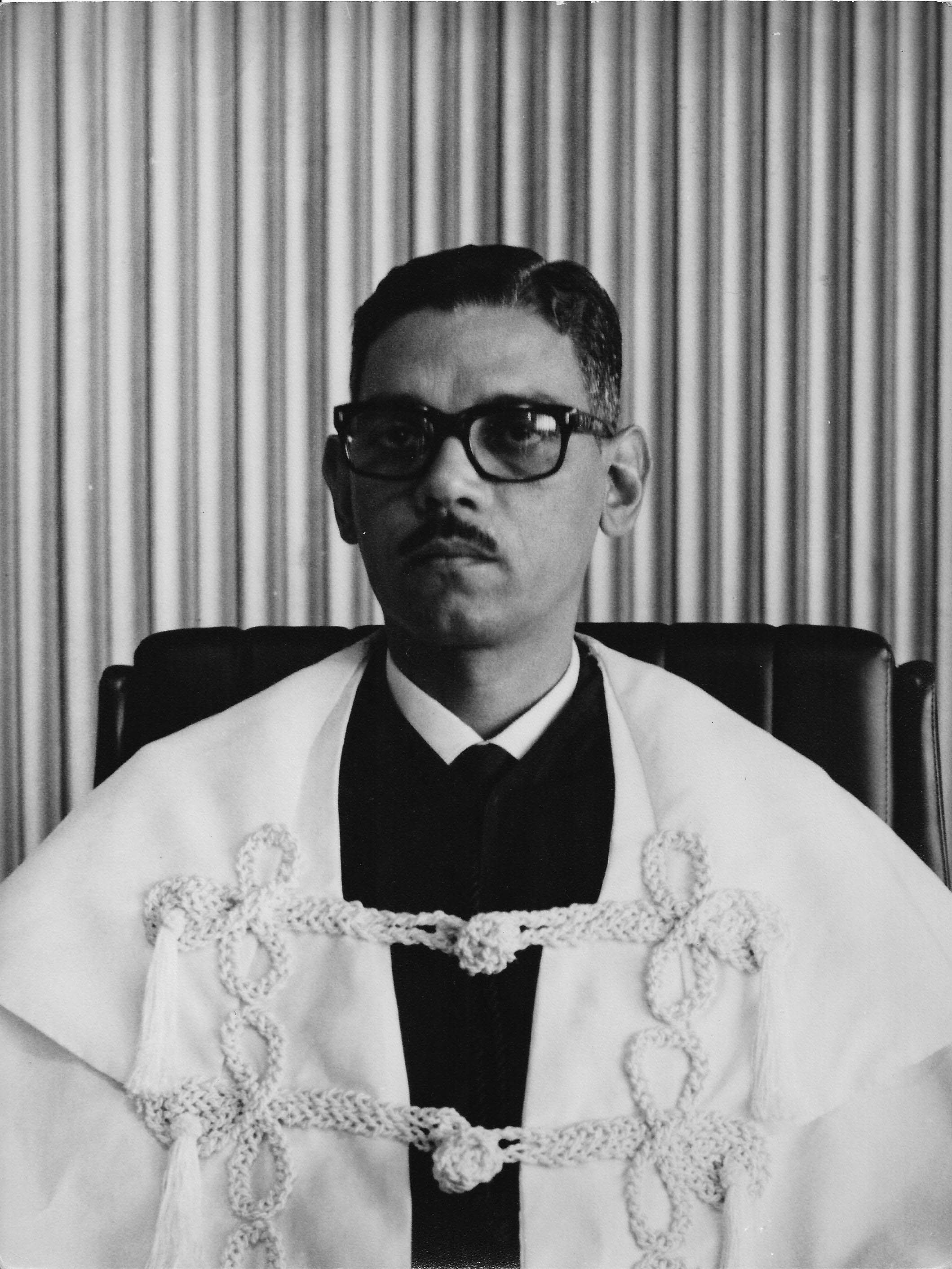 Abstract: | Fotografia do Professor Adierson Erasmo de Azevedo, nascido na Cidade do Recife, Pernambuco, em 02 de junho de 1926. Engenheiro Agrônomo pela Escola Superior de Agricultura de Pernambuco (ESAP), formado na turma de 1948. Mestre em Estatística pelo Centro Interamericano do Chile, Doutor em Economia Rural e Livre Docente pela UFRPE, PhD em Agricultural Economics pela University of Tenesse, USA, PhD em Philosophy pela Erich Fromm World University, Miami, Flórida, USA. Reitor da UFRPE no período de dezembro de 1969 a agosto de 1973. Retrata o Professor Adierson Erasmo de Azevedo aos 33 anos, após tomar posse oficial como Reitor, sentado no Gabinete da Reitoria em 13 de novembro de 1963, posando para a foto oficial, trajando a samarra branca, veste talar ou traje oficial complementar das vestes Doutorais próprias da vestimenta do Cerimonial Universitário, usado pelo reitor nas solenidades oficiais. FONTES DE PESQUISA: Entrevista concedida às bibliotecárias Conceição Martins e Vania Ferreira para atender aos objetivos do Repositório Institucional, projeto “(Re) Memórias da UFRPE”, para a contextualização das imagens do acervo fotográfico do reitorado do Prof. Dr. Adierson Erasmo de Azevedo, no período de dezembro de 1969 a agosto de 1973, localizado no Núcleo do Conhecimento Professor João Baptista Oliveira dos Santos, da Biblioteca Central da UFRPE. Entrevista realizada no dia 13 de abril de 2016, no Espaço Santander da Biblioteca Central da UFRPE. Duração de 2h40min com transcrição e pesquisa complementar da bibliotecária Conceição Martins; Plaquete Mérito Agronômico 2004. Recife: APCA, 2004. 98 p.; AZEVEDO, Adierson Erasmo de. A “caminhada seguindo o sol” da Universidade Federal Rural de Pernambuco. Recife: EDUFERPE, 2007. 147 p. GOMES, Simone. Cerimonial da UFRPE. Depoimento oral concedido à bibliotecária Conceição Martins em 20 de abril de 2016. |