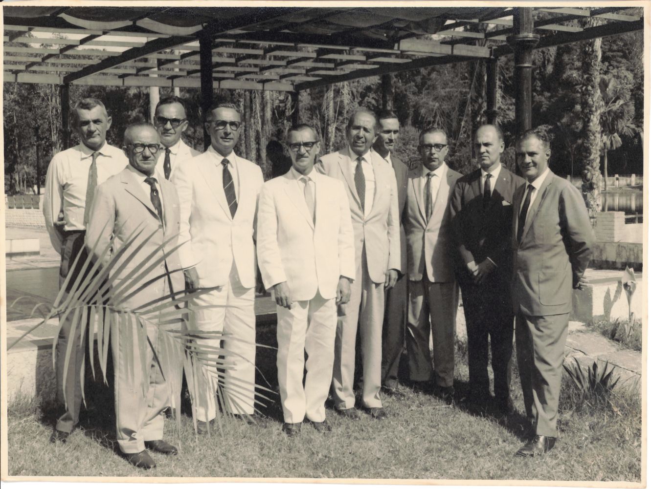 | Abstract: | Flagrante fotográfico da segunda pose da recepção do reitor Renato Ramos de Farias e professores da UFRPE à comitiva de docentes da Escola de Agronomia de Areias, PB, em visita à essa Instituição de Ensino Superior, após almoço de confraternização realizado em local não identificado. Como essa fotografia não possui uma data especificada, adotou-se o ano de 1963 como a data em que foi registrada. Vendo-se dez professores, entre eles, o reitor Renato Ramos de Farias ocupando a quinta posição no ângulo lateral direto da fotografia, trajando terno de cor clara, camisa branca e gravata poá de cor escura, estando ao seu lado direito, no centro da imagem, o professor Luiz Carlos de Lyra Neto, diretor da Escola de Agronomia de Areias, vestindo terno branco, camisa branca e gravata de cor clara, usando óculos. Também integram essa fotografia, os professores da UFRPE: Antonio Correia, Arnaldo Peixoto e Sílvio Pontual. É possível observar que nove desses professores olham diretamente para a objetiva esboçam um leve sorriso enquanto apenas um deles olha em outra direção e não sorri. Os nomes de quatro docentes não foram relacionados. Observa-se que o grupo posou no mesmo lugar da fotografia anterior, porém, o fotógrafo se posicionou de forma diferente, clicando a todos em um ângulo diverso, todavia, na mesma grama defronte ao caramanchão em madeira que apresenta uma cobertura vegetal formada por plantas trepadeiras. Vendo-se também na parte posterior ao grupo, um piso mais alto e logo após uma área com vegetação, podendo-se observar ainda nas laterais direita e esquerda da fotografia, objetos não identificados. FONTE DE PESQUISA: Informações escritas a lápis no verso da fotografia. PESQUISA COMPLEMENTAR: KOSSOY, Boris. Realidades e ficções na trama fotográfica. São Paulo: Ateliê Editorial, 2020; LE GOFF, Jacques. Documento/Monumento. In:_____. História e memória. Campinas: UNICAMP, 2003. p. 525-54; UNIVERSIDADE FEDERAL RURAL DE PERNAMBUCO. Plaquete oitenta anos dos Cursos de Ciências Agrárias: (1912-1992). Recife: UFRPE, 1992. |