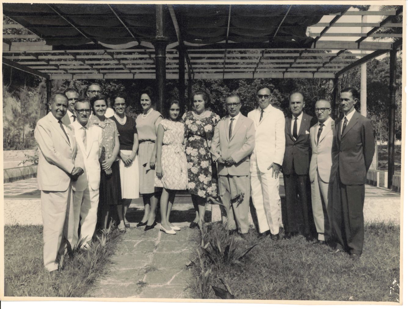| Abstract: | Imagem que revelou a posteridade o encontro e a confraternização entre o reitor Renato Ramos de Farias e professores da UFRPE posando ao lado da comitiva de docentes da Escola de Agronomia de Areias, PB, em visita à essa Universidade, após almoço de confraternização realizado em local não identificado. Como essa fotografia não possui uma data especificada, adotou-se o ano de 1963 como a data em que foi registrada. Vendo-se no ângulo esquerdo da fotografia, de perfil, o reitor trajando terno de cor clara, camisa branca e gravata poá de cor escura, com as mãos cruzadas à sua frente sorrindo para a objetiva, tendo ao seu lado direito, o professor Luiz Carlos de Lyra Neto, diretor da Escola de Agronomia de Areias, vestindo terno branco, camisa branca e gravata de cor clara, usando óculos, com as mãos cruzadas às costas. Também fazem parte dessa fotografia, os professores da UFRPE: Antonio Correia, Arnaldo Peixoto e Sílvio Pontual. Nessa foto, posaram para o fotógrafo nove professores e cinco mulheres de nomes não identificados. O grupo posou na grama defronte a um caramanchão em madeira que apresenta uma cobertura vegetal formada por plantas trepadeiras. Vendo-se também na parte posterior uma área com vegetação. FONTE DE PESQUISA: Informações escritas a lápis no verso da fotografia. PESQUISA COMPLEMENTAR: KOSSOY, Boris. Fotografia e memória: reconstrução por meio da fotografia. In: SAMIN, Etienne G. (org). O fotográfico. São Paulo: Hucitec, 1998; LE GOFF, Jacques. Documento/Monumento. In:_____. História e memória. Campinas: UNICAMP, 2003. p. 525-54; UNIVERSIDADE FEDERAL RURAL DE PERNAMBUCO. Plaquete oitenta anos dos Cursos de Ciências Agrárias: (1912-1992). Recife: UFRPE, 1992. |